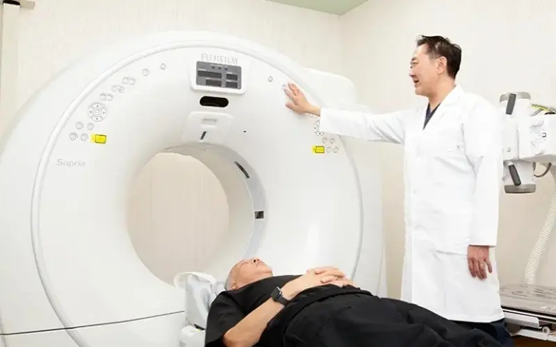 この検査では、骨や水分などは白く描写され、肺などの空気が多い場所は黒く写るという特徴があります。